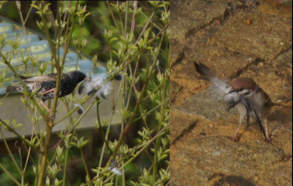 Und wie es in der Natur so ist: Sie hinterlässt keinen Müll. Die Flaumfedern wurden von Staren und Sperlingen aus den Büschen gepflückt und in ihre eigenen Nester eingebaut. Der Star nistete übrigens unter dem Rabennest, aber in seinem geschützten Kasten hat er das nächtliche Abenteuer überlebt.